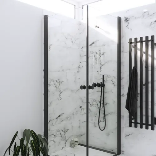 Want to complete the black look? Then consider pairing your heated towel rail with our Match shower solutions featuring black profiles. This creates a beautiful, cohesive appearance and visually ties the entire bathroom together.