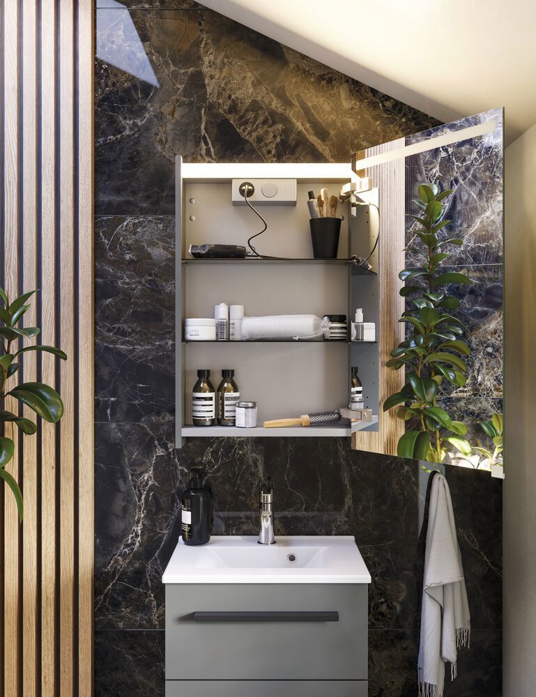 Square mirror cabinets are available in a variety of sizes and colours with the option of choosing various lighting solutions. The square mirror cabinet can be chosen in the same colour as your other bathroom furniture for a consistent colour theme or you can choose a mirror cabinet that stands out against your bathroom decor.