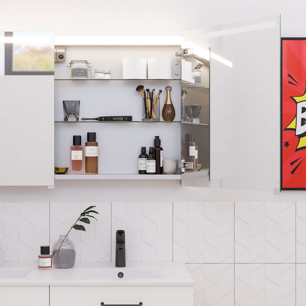 Square mirror cabinets are available in a variety of sizes and colours with the option of choosing various lighting solutions. The square mirror cabinet can be chosen in the same colour as your other bathroom furniture for a consistent colour theme or you can choose a mirror cabinet that stands out against your bathroom decor.