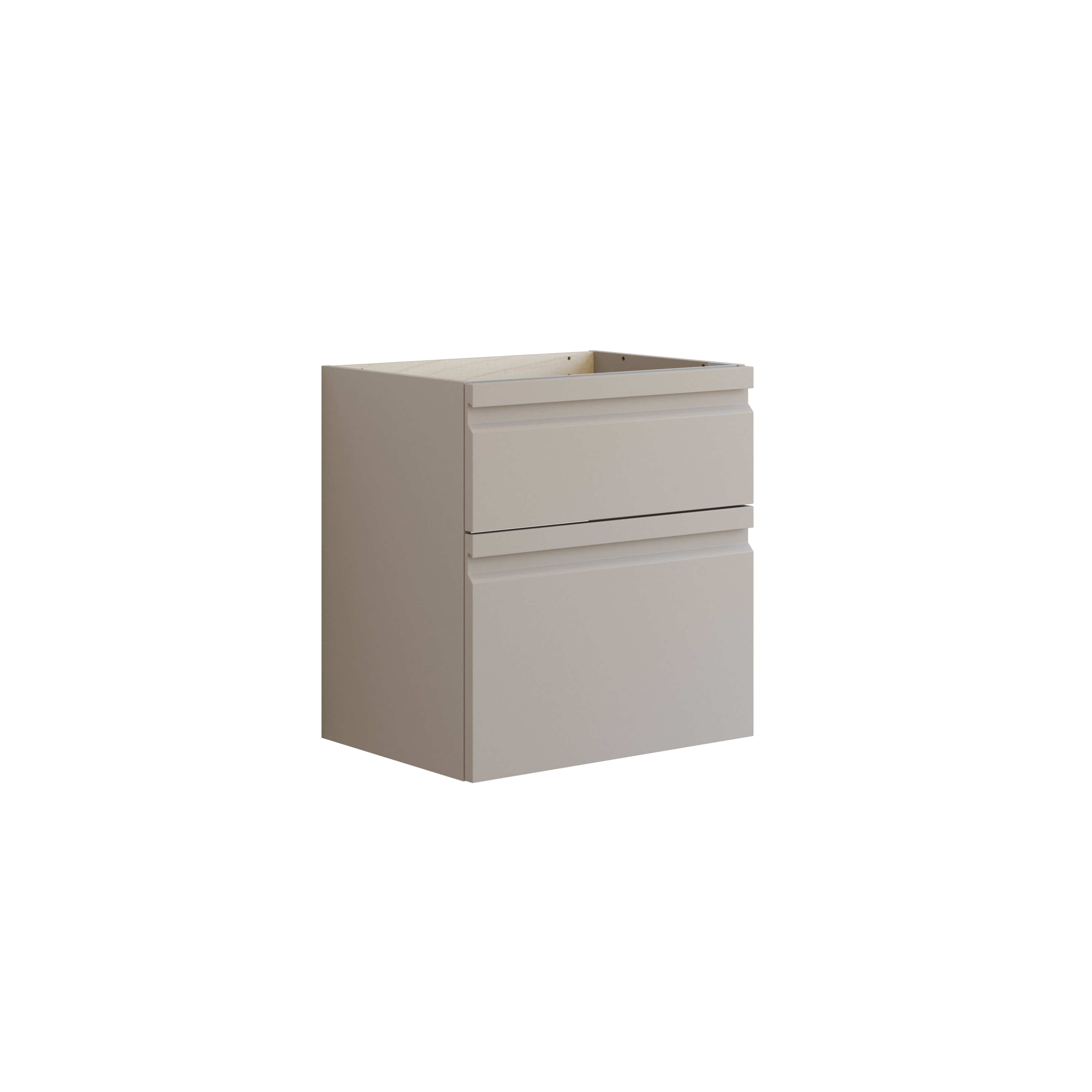 Our wall-mounted vanity units create a modern, airy look and make cleaning effortless, as you can easily vacuum and mop underneath.