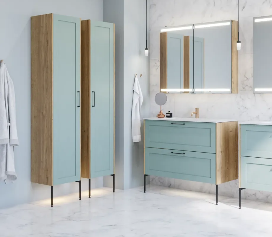 Many of our mirrors and mirror cabinets have built-in LED lighting which either adds ambience to the bathroom or a more precise light to highlight the details of your face for example. The Moon mirror projects the light forward so that it highlights your face, while the Corona mirror is backlit and therefore provides great mood lighting to your bathroom.