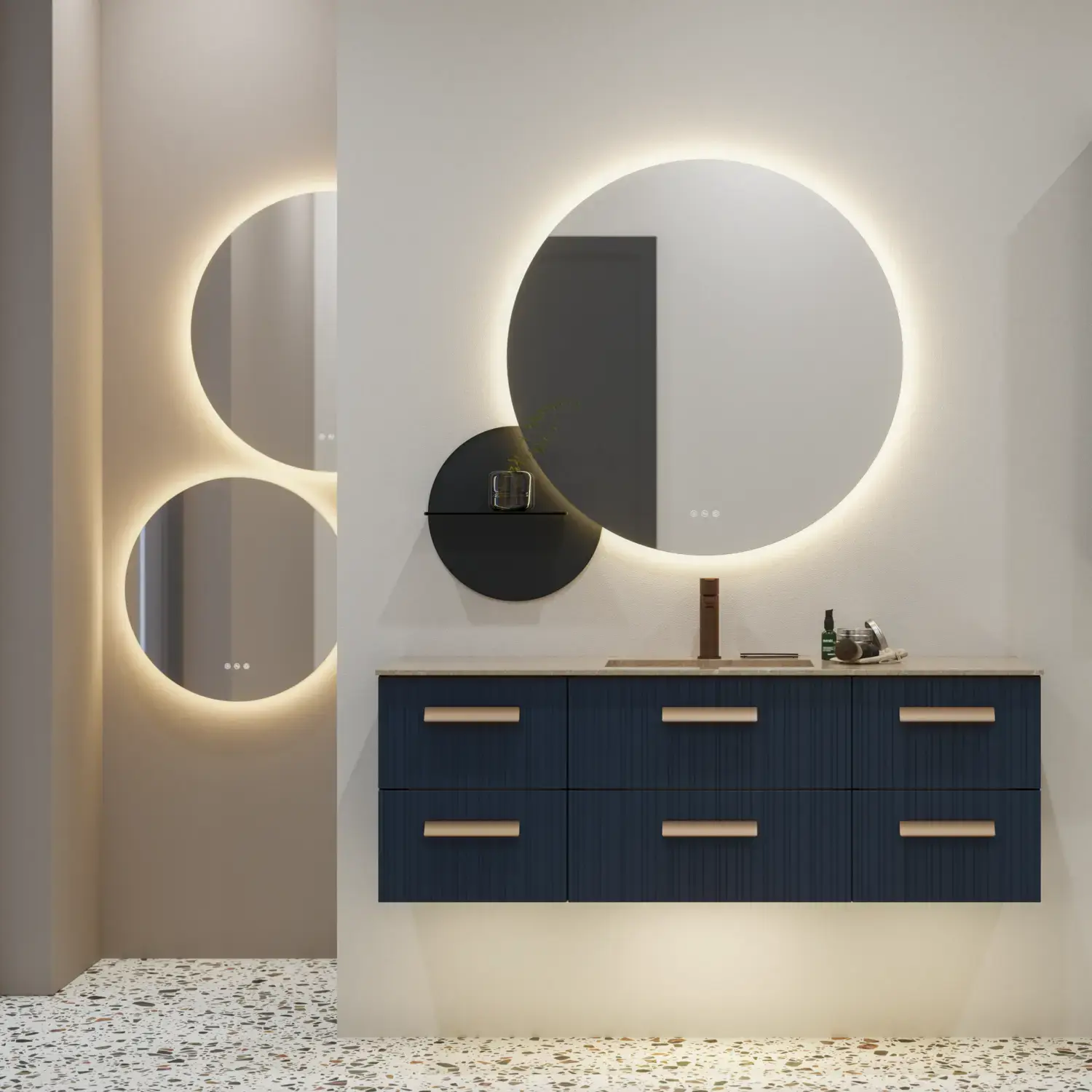 A round mirror gives the bathroom a soft and organic feel. A round mirror can create a more relaxed and playful atmosphere and break up sharp lines and angles in a room.