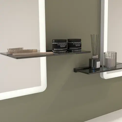 Practical shelves can be the finishing touches in the decoration of your bathroom while keeping the items most used within easy reach. Place them next to the mirror and use the space under the sloping wall. You can choose various lengths and let the shelves follow the form of the wall or the mirror.