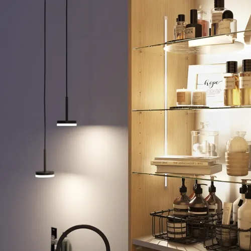 Therefore, it is important to choose the best lighting not only for the mirrors and mirror cabinets, but also for the rest of the bathroom. To create the perfect lighting solution in your bathroom with optimal lighting conditions you can choose pendants, spots and ceiling lights matching the lights on the mirrors and mirror cabinets.