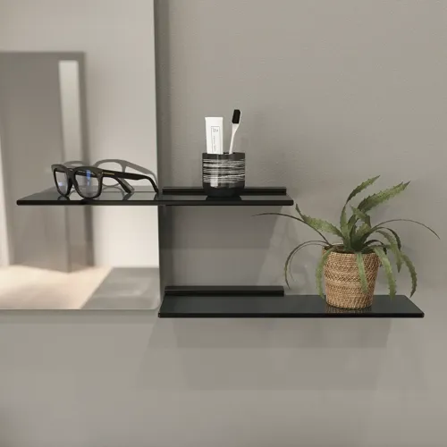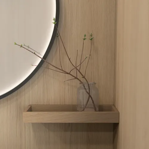 With floating shelves in the same colour as your furniture you can place various ornaments or accessories in the bathroom and create your own personal layout. The shelves have concealed fittings so they appear to float on the wall. The shelves can also be used if you lack more space for small items that you use often, e.g. next to the mirror.