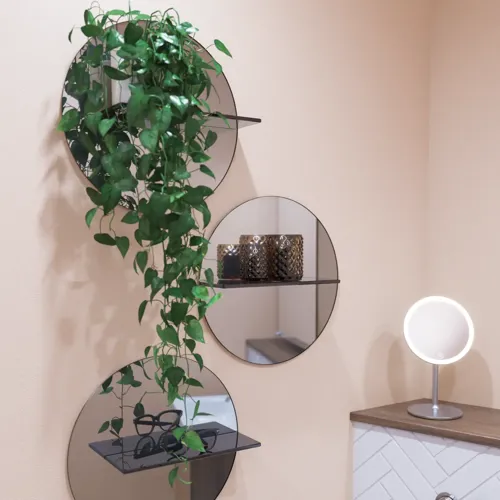See how smart and simple it can be - the nifty little Chic metal shelf floats in front of the mirror and is perfect for holding accessories or your favourite diffuser.