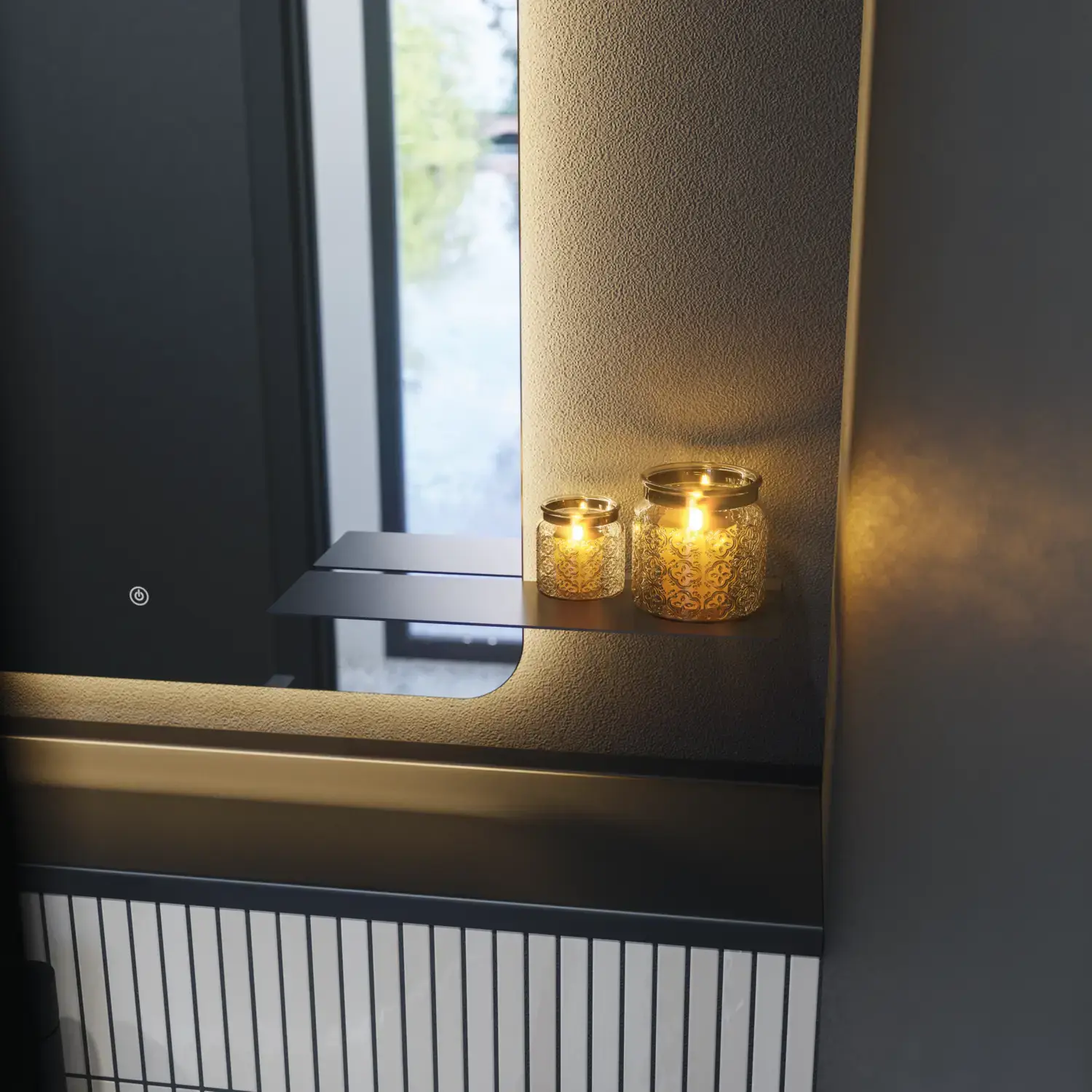 See how smart and simple it can be - the nifty little Chic metal shelf floats in front of the mirror and is perfect for holding accessories or your favourite diffuser.