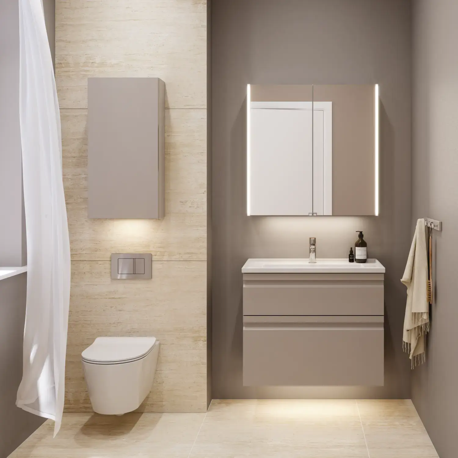 You can also decorate your room in the same shades when you carry out your bathroom renovation. This gives a well-thought-out look with an exclusive and calm feel when keeping the walls and the bathroom furniture in a tone-in-tone palette. The luxurious effect of a tone-in-tone palette is sometimes used to make small areas seem bigger.