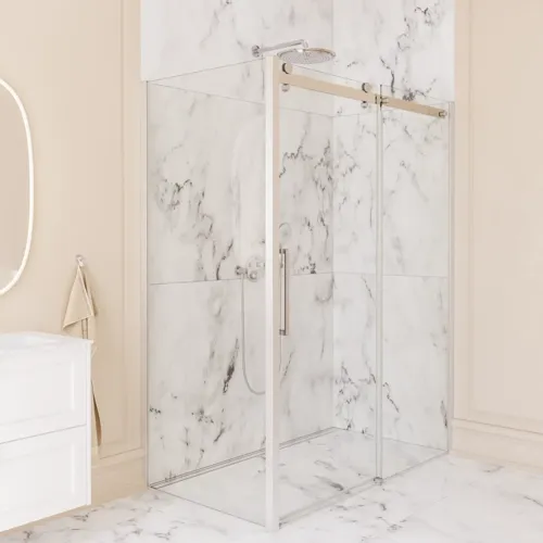 Can open inwards or outwards, leaving plenty of floor space. Two hinged doors can also be installed together to create a corner shower enclosure.