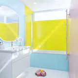 Furniture can be installed up to the fixed shower panel. And fixed shower panels can also create a corner shower with an opening.