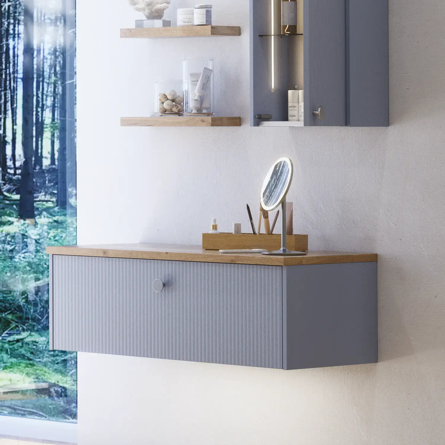 Play with the many different options there are to choose from for your bathroom. Not only when it comes to the larger elements such as furniture, worktops and lighting, but also to the smaller decorative details such as handles, legs and shelves. Take time to experiment by mixing and matching different looks and styles. Your imagination is the only limit to a unique bathroom solution showcasing your personality and style.
