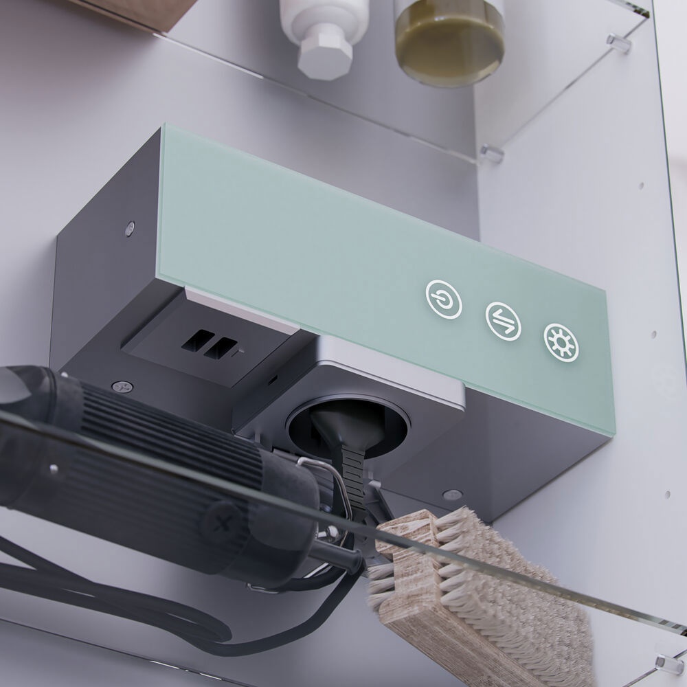 Experience both beautiful design and functionality with the Ambi mirror cabinet. The mirror cabinet offers plenty of extra storage space and comes with a magnifying mirror, metal shelf and magnetic accessory holder. Inside you'll also find a handy electrical socket and a USB port that you can use for your shaver or when you need to charge your electric toothbrush. The Ambi mirror cabinet is of course available in beautiful colours, so you get a mirror cabinet that matches your bathroom furniture. NB: There is a start-up fee (BI2) for products with bespoke colour. It is an one-off surcharge per bespoke colour regardless number of products.