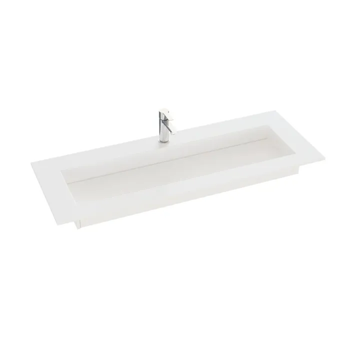 The Angular basin represents the perfect choice for modern bathrooms with its minimalist look and sharp, angular design. The basin was developed in close collaboration with Cosentino and is available in the popular Silestone finishes as well as the sustainable Dekton finish, Trilium. Trilium is known for its raw, industrial look and is made from up to 80% recycled materials, making it a responsible choice, both aesthetically and environmentally. The basin is made from pieces of stone that are bonded together to create an elegant and functional basin. The bottom of the basin is sloped to direct the water efficiently towards the narrow, hidden drain that spans the width of the basin, giving it a sleek and functional appearance. The Angular basin is an ideal solution for those who want both a beautiful and sustainable element in their bathroom, where design and function go hand in hand.