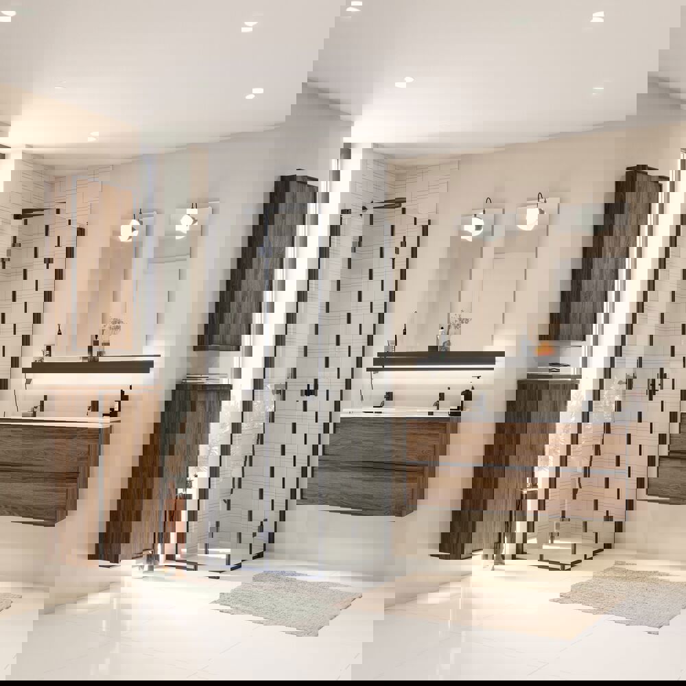 The base cabinet with a black frame in Version B offers a functional and stylish solution for your bathroom. With a width of 40 cm and a depth of 35 cm, this base cabinet is equipped with a pull-out tray and a laundry bag, making it ideal for storing both cosmetics and laundry. The black frame adds a modern edge to your bathroom, while the practical design ensures that everything remains organized and easily accessible. With this base cabinet, you can optimize your storage space and create a tidy environment where you can easily find everything you need. NB: There is a start-up fee (BI2) for products with bespoke colour. It is an one-off surcharge per bespoke colour regardless number of products. Remember to add the little practical things to your bathroom furniture that you will enjoy on a daily basis. For example, lights in drawers and cabinets, built-in electrical sockets and dimmed sensor lights under the furniture to guide night-time bathroom visits. Options are ordered at the same time as your furniture.