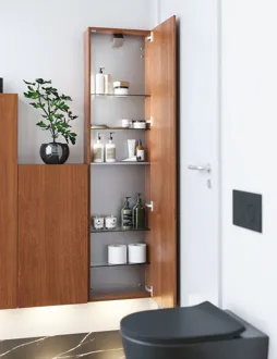 Dansani Calidris cabinets are a smart solution for bathrooms with limited space. With a narrow depth projection of only 16cm, you get plenty of storage space, even in smaller bathrooms. These cabinets combine space-saving design with functionality and style, making them ideal for organising toiletries, shampoos, creams and whatever else you need in the bathroom. Regardless of the size of the bathroom, Dansani Calidris cabinets add a practical and elegant storage solution. NB: There is a start-up fee (BI2) for products with oak and bespoke colour. It is an one-off surcharge per oak and bespoke colour regardless number of products. Remember to add the little practical things to your bathroom furniture that you will enjoy on a daily basis. For example, lights in drawers and cabinets, built-in electrical sockets and dimmed sensor lights under the furniture to guide night-time bathroom visits. Options are ordered at the same time as your furniture.
