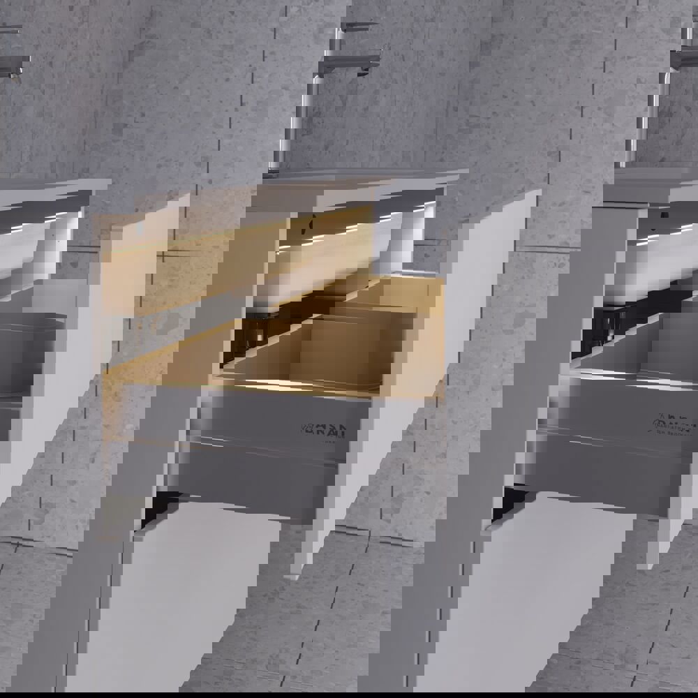 Create the perfect bathroom experience with the cabinet featuring one drawer. This versatile cabinet serves as the ideal complement to your vanity unit, featuring a spacious drawer that easily accommodates all your essential toiletries. The stylish black frame around the drawer gives the cabinet a modern and refined look. With this cabinet, you not only get practical storage but also an aesthetic solution that adds character to your bathroom. NB: There is a start-up fee (BI2) for products with bespoke colour. It is an one-off surcharge per bespoke colour regardless number of products. Remember to add the little practical things to your bathroom furniture that you will enjoy on a daily basis. For example, lights in drawers and cabinets, built-in electrical sockets and dimmed sensor lights under the furniture to guide night-time bathroom visits. Options are ordered at the same time as your furniture.