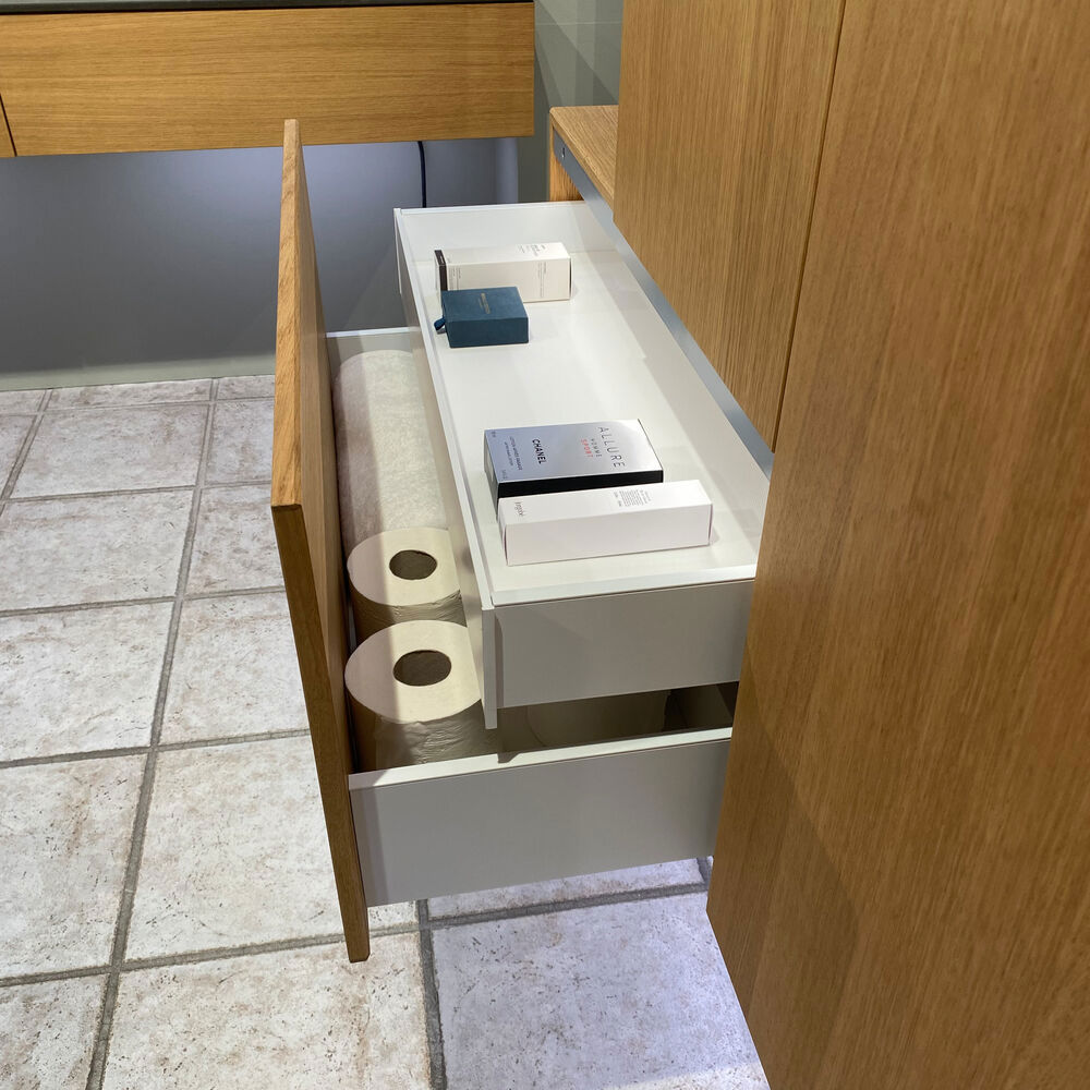 Dansani Calidris 1-drawer cabinets are the ideal solution for smart and stylish storage in the bathroom. With no space lost to wastes or drains, these cabinets are for those who opt for an asymmetrical solution with a made to measure basin, or for those who want extra storage elsewhere in the bathroom. The spacious drawer allows you to keep your bathroom organised and there's plenty of room for creams, shampoos and more. The Dansani Calidris cabinet gives you the opportunity to organise your bathroom in a uniform and beautiful way. NB: There is a start-up fee (BI2) for products with oak and bespoke colour. It is an one-off surcharge per oak and bespoke colour regardless number of products. Remember to add the little practical things to your bathroom furniture that you will enjoy on a daily basis. For example, lights in drawers and cabinets, built-in electrical sockets and dimmed sensor lights under the furniture to guide night-time bathroom visits. Options are ordered at the same time as your furniture.