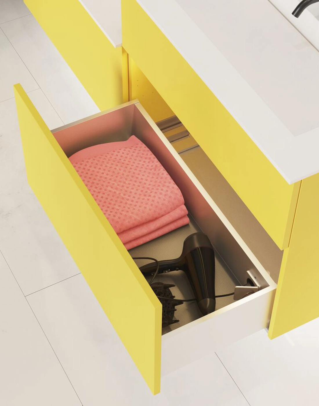 Create the ultimate bathroom oasis with the single drawer cabinet. This versatile cabinet perfectly complements your vanity unit, and the deep drawer provides ample storage space for your bathroom essentials. With this cabinet, you get both functionality and great looks. Experience the perfect combination of form and function with the single drawer cabinet, and create an orderly atmosphere that exudes elegance. NB: There is a start-up fee (BI2) for products with bespoke colour. It is an one-off surcharge per bespoke colour regardless number of products. Remember to add the little practical things to your bathroom furniture that you will enjoy on a daily basis. For example, lights in drawers and cabinets, built-in electrical sockets and dimmed sensor lights under the furniture to guide night-time bathroom visits. Options are ordered at the same time as your furniture.