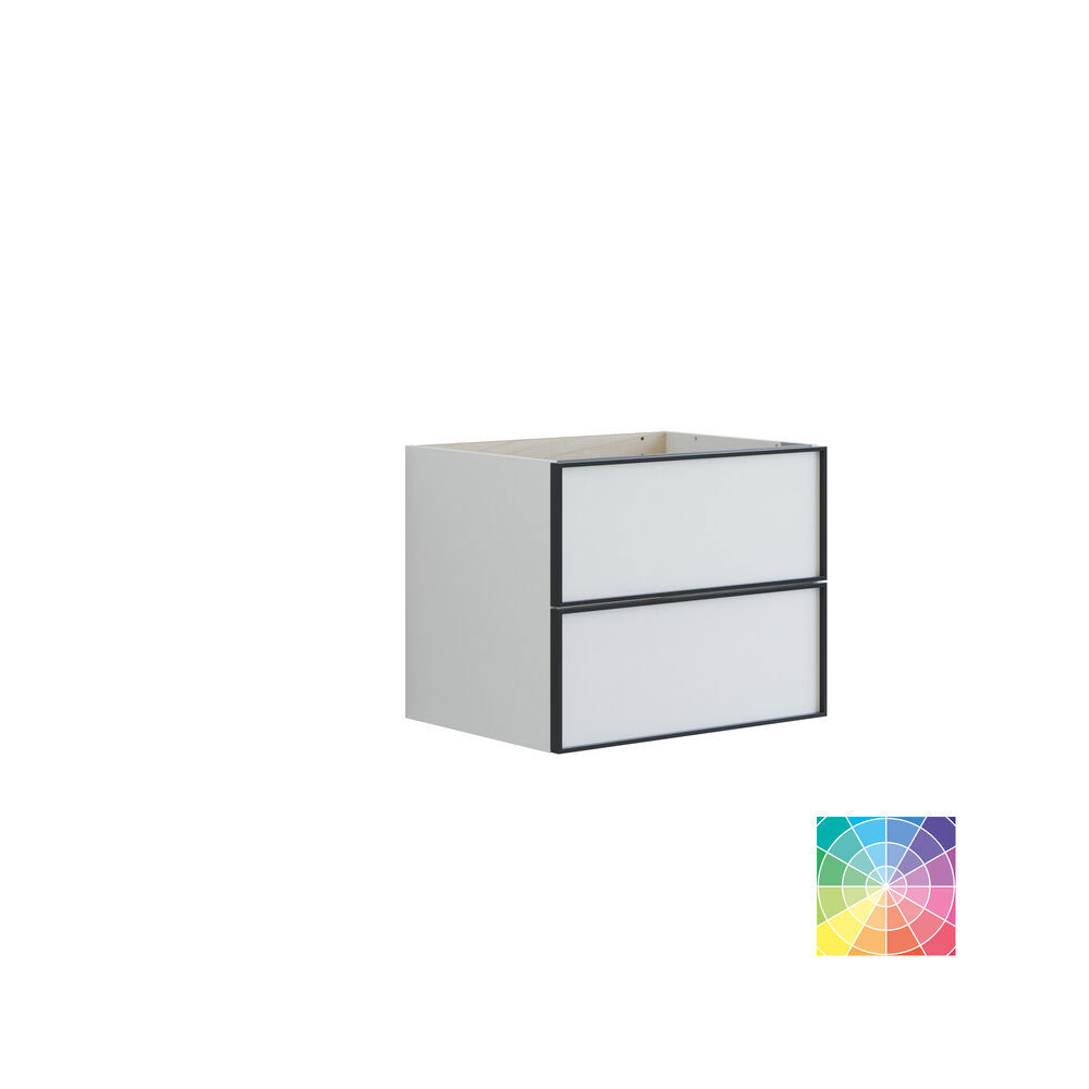 Upgrade your bathroom with cabinets that feature 2 drawers for smart storage and no waste cut-out. Standing at 48 cm tall, these cabinets showcase a stylish black frame that adds a modern and refined look. They are ideal for pairing with a vanity unit and a countertop with a freestanding basin. The black frame provides not only ample storage space but also an attractive design solution. Choose from various colors to create the perfect match for your decor. NB: There is a start-up fee (BI2) for products with bespoke colour. It is an one-off surcharge per bespoke colour regardless number of products. Remember to add the little practical things to your bathroom furniture that you will enjoy on a daily basis. For example, lights in drawers and cabinets, built-in electrical sockets and dimmed sensor lights under the furniture to guide night-time bathroom visits. Options are ordered at the same time as your furniture.