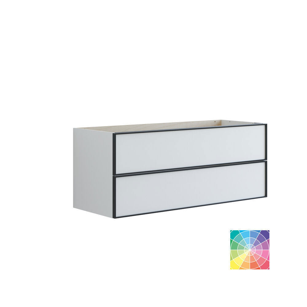 Upgrade your bathroom with cabinets that feature 2 drawers for smart storage and no waste cut-out. Standing at 48 cm tall, these cabinets showcase a stylish black frame that adds a modern and refined look. They are ideal for pairing with a vanity unit and a countertop with a freestanding basin. The black frame provides not only ample storage space but also an attractive design solution. Choose from various colors to create the perfect match for your decor. NB: There is a start-up fee (BI2) for products with bespoke colour. It is an one-off surcharge per bespoke colour regardless number of products. Remember to add the little practical things to your bathroom furniture that you will enjoy on a daily basis. For example, lights in drawers and cabinets, built-in electrical sockets and dimmed sensor lights under the furniture to guide night-time bathroom visits. Options are ordered at the same time as your furniture.