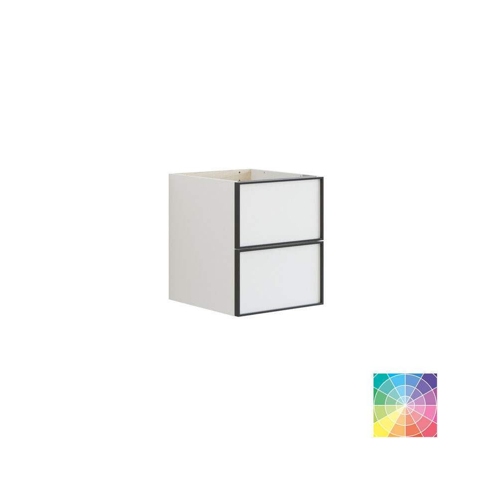 Upgrade your bathroom with cabinets that feature 2 drawers for smart storage and no waste cut-out. Standing at 48 cm tall, these cabinets showcase a stylish black frame that adds a modern and refined look. They are ideal for pairing with a vanity unit and a countertop with a freestanding basin. The black frame provides not only ample storage space but also an attractive design solution. Choose from various colors to create the perfect match for your decor. NB: There is a start-up fee (BI2) for products with bespoke colour. It is an one-off surcharge per bespoke colour regardless number of products. Remember to add the little practical things to your bathroom furniture that you will enjoy on a daily basis. For example, lights in drawers and cabinets, built-in electrical sockets and dimmed sensor lights under the furniture to guide night-time bathroom visits. Options are ordered at the same time as your furniture.