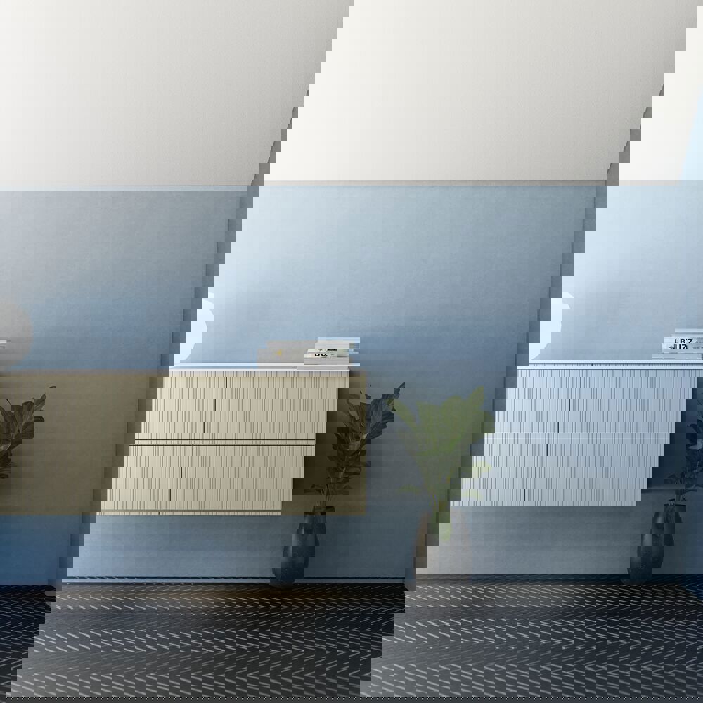 Renew your bathroom with cabinets that feature 2 functional drawers and no waste cut-out. These cabinets are 48 cm high and showcase an elegant fluted front that adds a unique and stylish appearance. Ideal for modern bathrooms, they can easily be paired with a vanity unit and a countertop with a freestanding basin. The fluted front enhances character and depth in your bathroom while providing ample storage space for your essentials. With these cabinets, you enjoy both functionality and aesthetics in a single solution. NB: There is a start-up fee (BI2) for products with bespoke colour. It is an one-off surcharge per bespoke colour regardless number of products. Remember to add the little practical things to your bathroom furniture that you will enjoy on a daily basis. For example, lights in drawers and cabinets, built-in electrical sockets and dimmed sensor lights under the furniture to guide night-time bathroom visits. Options are ordered at the same time as your furniture.