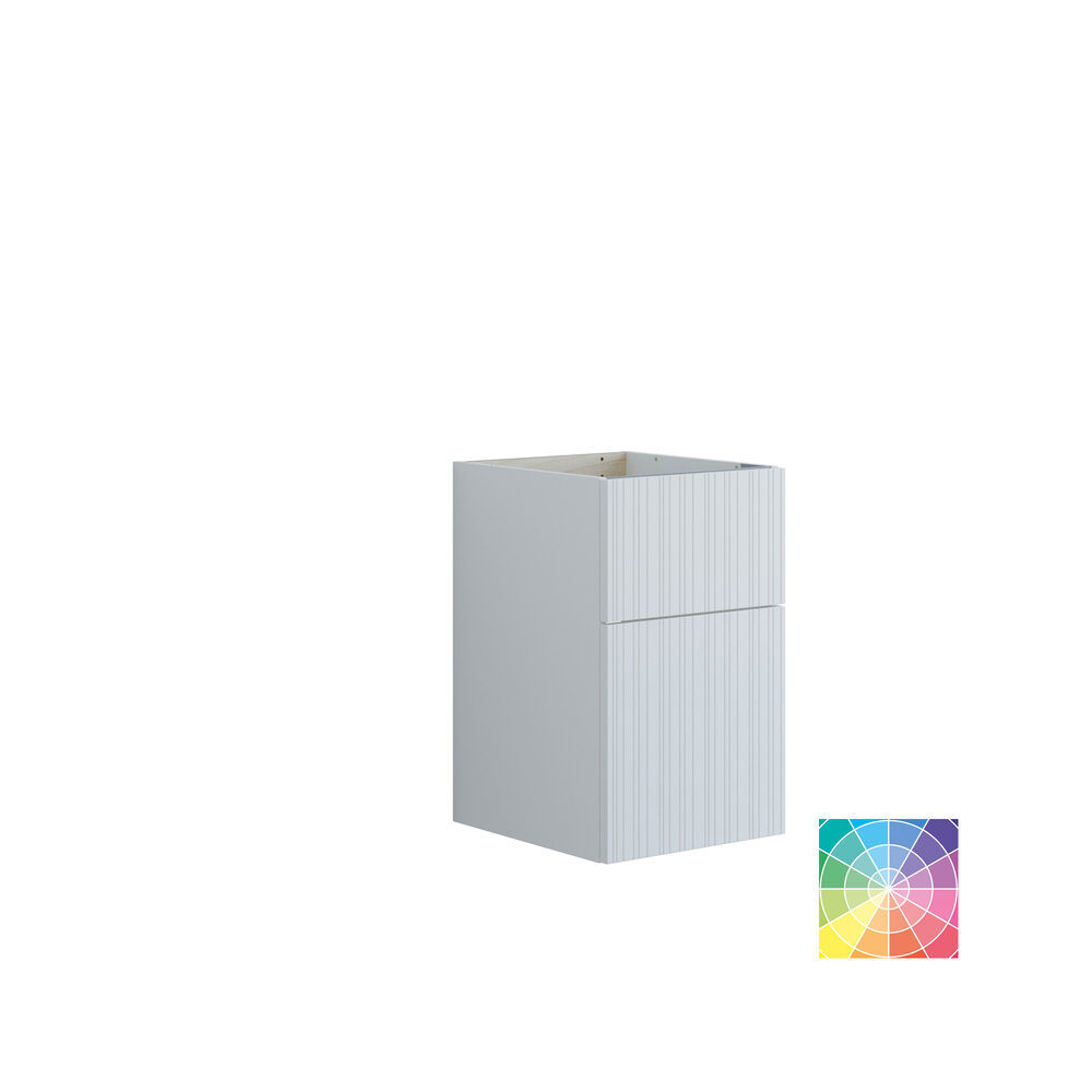 Create a stylish bathroom with cabinets that feature 2 drawers and a height of 64 cm. The tall bottom drawer offers ample space for storing your bathroom essentials, while the fluted front adds a modern and unique detail to the design. These cabinets can be used independently or combined with a vanity unit and a countertop with a freestanding sink to achieve an exciting asymmetrical look. You can choose from various colors to customize the cabinets to your personal style. Cabinets with 2 drawers provide both functionality and aesthetic appeal, making your bathroom more elegant and organized. NB: There is a start-up fee (BI2) for products with bespoke colour. It is an one-off surcharge per bespoke colour regardless number of products. Remember to add the little practical things to your bathroom furniture that you will enjoy on a daily basis. For example, lights in drawers and cabinets, built-in electrical sockets and dimmed sensor lights under the furniture to guide night-time bathroom visits. Options are ordered at the same time as your furniture.
