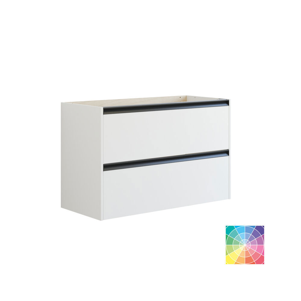 Optimize your bathroom decor with a base cabinet featuring an integrated handle and two drawers. The smart drawers provide easy access to your items, while the sleek design creates a modern expression. The harmonious color ensures that the cabinet fits perfectly into your bathroom. Whether it stands alone with a countertop or as part of a complete solution with a vanity unit, this cabinet will add both functionality and elegance to the space. NB: There is a start-up fee (BI2) for products with bespoke colour. It is an one-off surcharge per bespoke colour regardless number of products. Remember to add the little practical things to your bathroom furniture that you will enjoy on a daily basis. For example, lights in drawers and cabinets, built-in electrical sockets and dimmed sensor lights under the furniture to guide night-time bathroom visits. Options are ordered at the same time as your furniture.