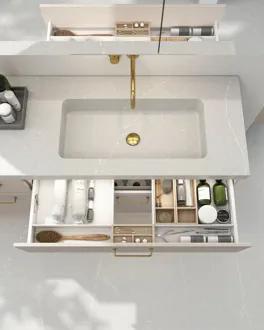 Dansani Calidris 2-drawer cabinets are the perfect solution for those who want smart and stylish storage in their bathroom. With Calidris you get thoughtful Danish design and these cabinets are designed to maximize space without compromising on functionality or looks. The two spacious drawers allow you to easily arrange and store your toiletries, towels and bathroom essentials in an organised way. The design of the cabinets is simple and timeless, making them a stylish addition to any bathroom. NB: There is a start-up fee (BI2) for products with oak and bespoke colour. It is an one-off surcharge per oak and bespoke colour regardless number of products. Remember to add the little practical things to your bathroom furniture that you will enjoy on a daily basis. For example, lights in drawers and cabinets, built-in electrical sockets and dimmed sensor lights under the furniture to guide night-time bathroom visits. Options are ordered at the same time as your furniture.