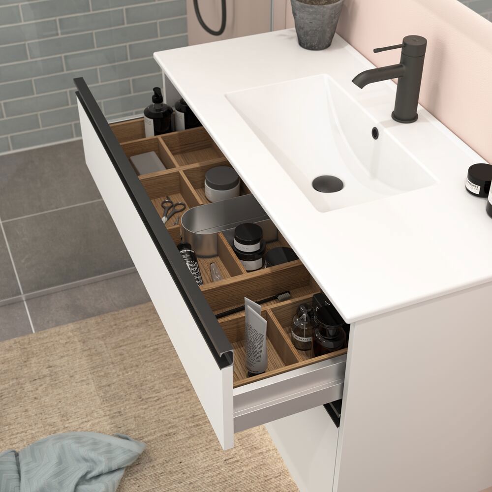 Dansani Calidris 2-drawer cabinets are the perfect solution for those who want smart and stylish storage in their bathroom. With Calidris you get thoughtful Danish design and these cabinets are designed to maximize space without compromising on functionality or looks. The two spacious drawers allow you to easily arrange and store your toiletries, towels and bathroom essentials in an organised way. The design of the cabinets is simple and timeless, making them a stylish addition to any bathroom. NB: There is a start-up fee (BI2) for products with oak and bespoke colour. It is an one-off surcharge per oak and bespoke colour regardless number of products. Remember to add the little practical things to your bathroom furniture that you will enjoy on a daily basis. For example, lights in drawers and cabinets, built-in electrical sockets and dimmed sensor lights under the furniture to guide night-time bathroom visits. Options are ordered at the same time as your furniture.