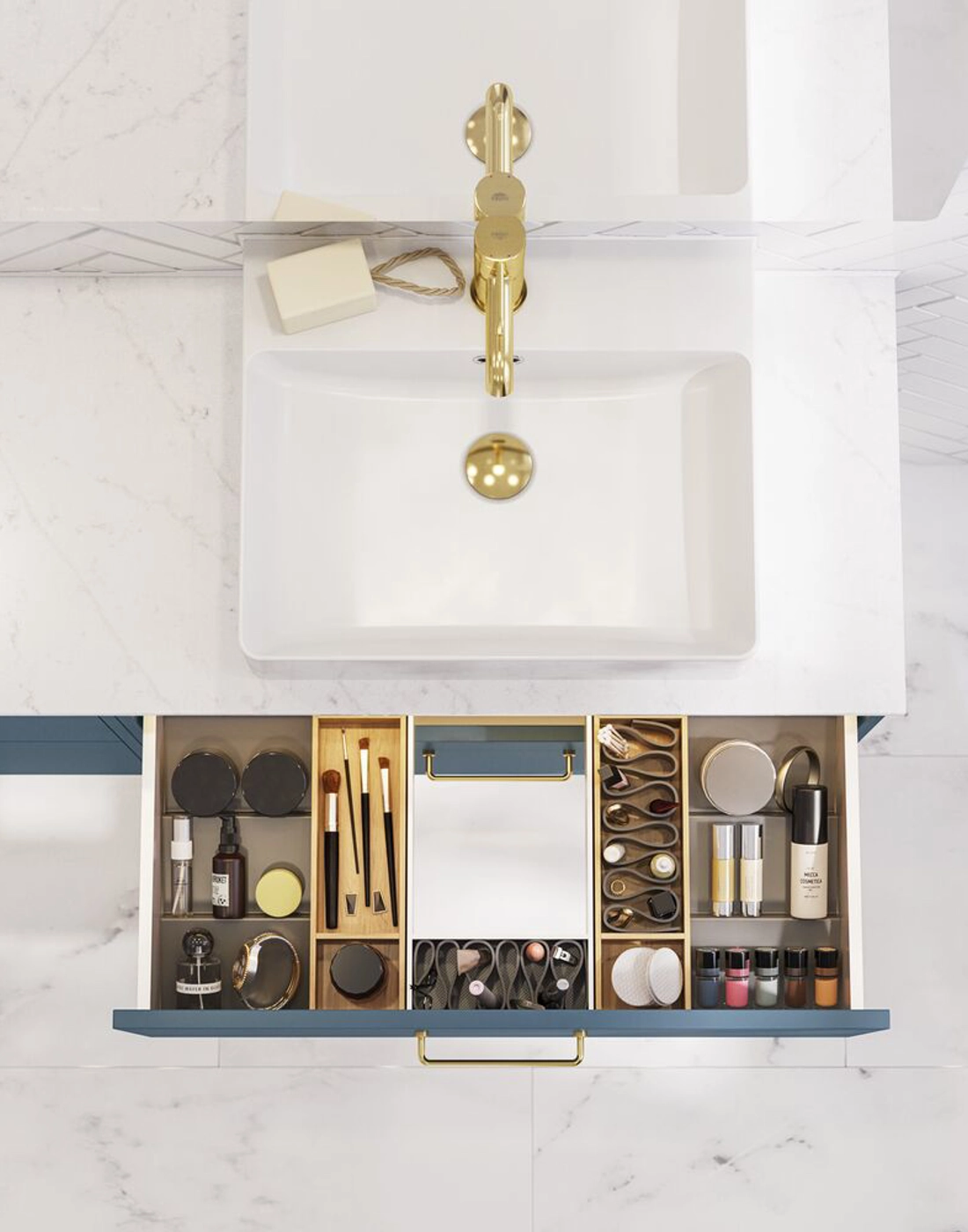 Transform your bathroom with this stylish base cabinet featuring a smooth front and two spacious drawers. This cabinet provides optimal storage space for all your bathroom items, making it easy to stay organized. The minimalist design makes it a perfect choice for modern bathrooms. Whether you place a countertop on top or combine it with a vanity unit, this cabinet adds an elegant and functional element to your bathroom. Choose from several colors to create your own style. NB: There is a start-up fee (BI2) for products with bespoke colour. It is an one-off surcharge per bespoke colour regardless number of products. Remember to add the little practical things to your bathroom furniture that you will enjoy on a daily basis. For example, lights in drawers and cabinets, built-in electrical sockets and dimmed sensor lights under the furniture to guide night-time bathroom visits. Options are ordered at the same time as your furniture.