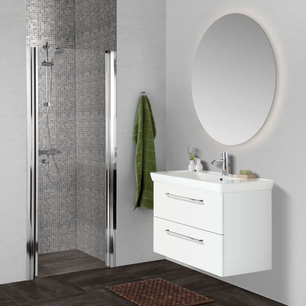 Corona is a beautiful and elegant round mirror where the subtle backlight highlights your bathroom creating a beautiful atmosphere. You can use the Corona mirror above a vanity unit or as a stand-alone element on the wall. The subtle and even lighting behind the mirror creates a pleasant glow that highlights the face without being too harsh or blinding. The Corona mirror is easy to install, easy to clean and made from quality materials to withstand the moisture in the bathroom. You can buy a anti-mist pad for the mirror to prevent the mirror from fogging up when you shower. You must install the anti-mist pad yourself.
