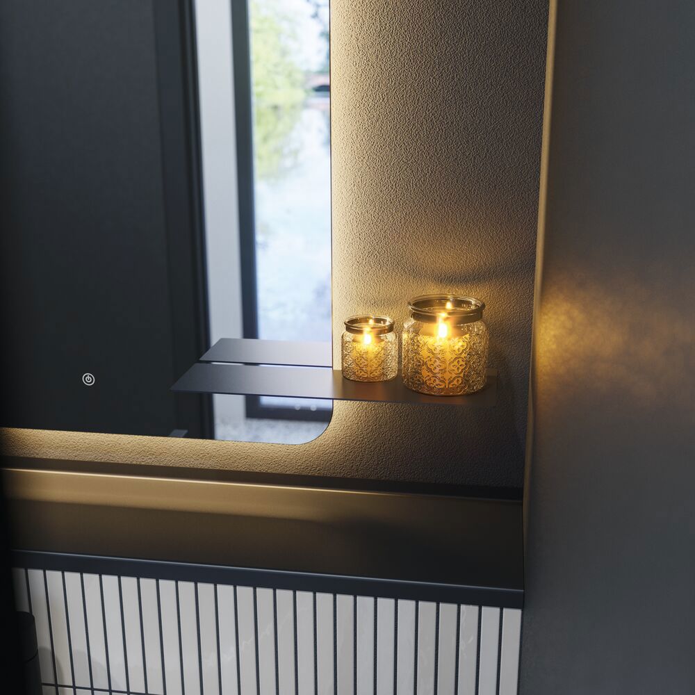 Glow mirror with light, touch dimmer control