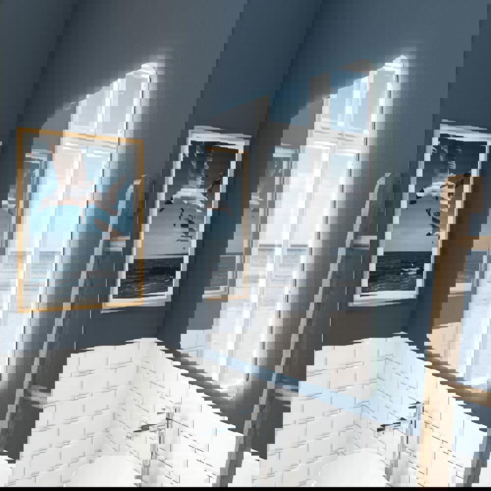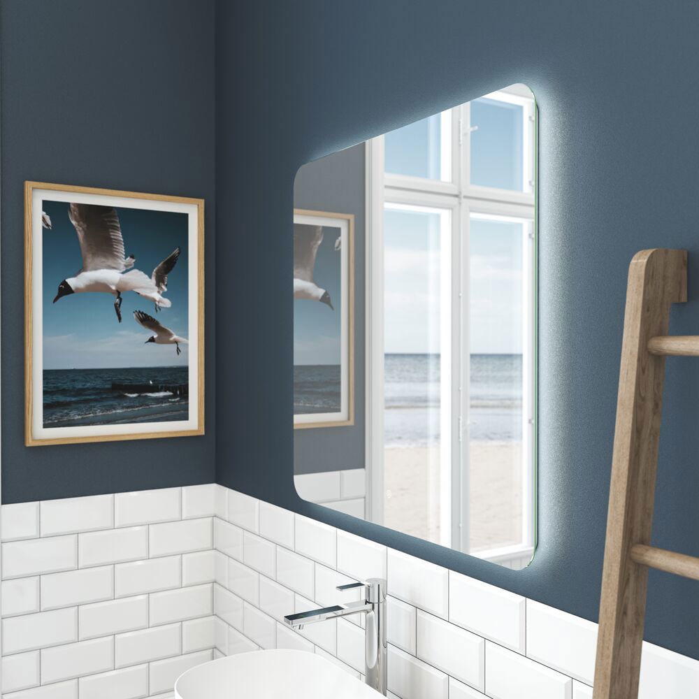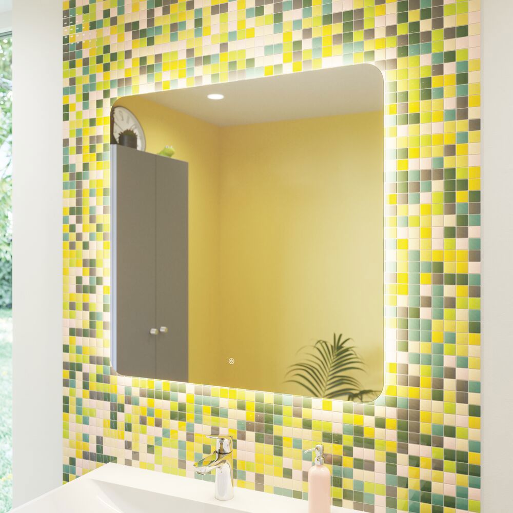 Glow mirror with light, touch dimmer control