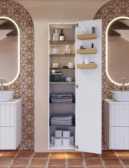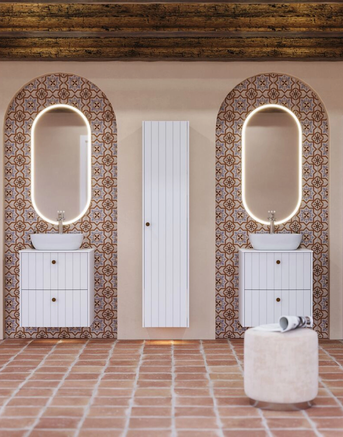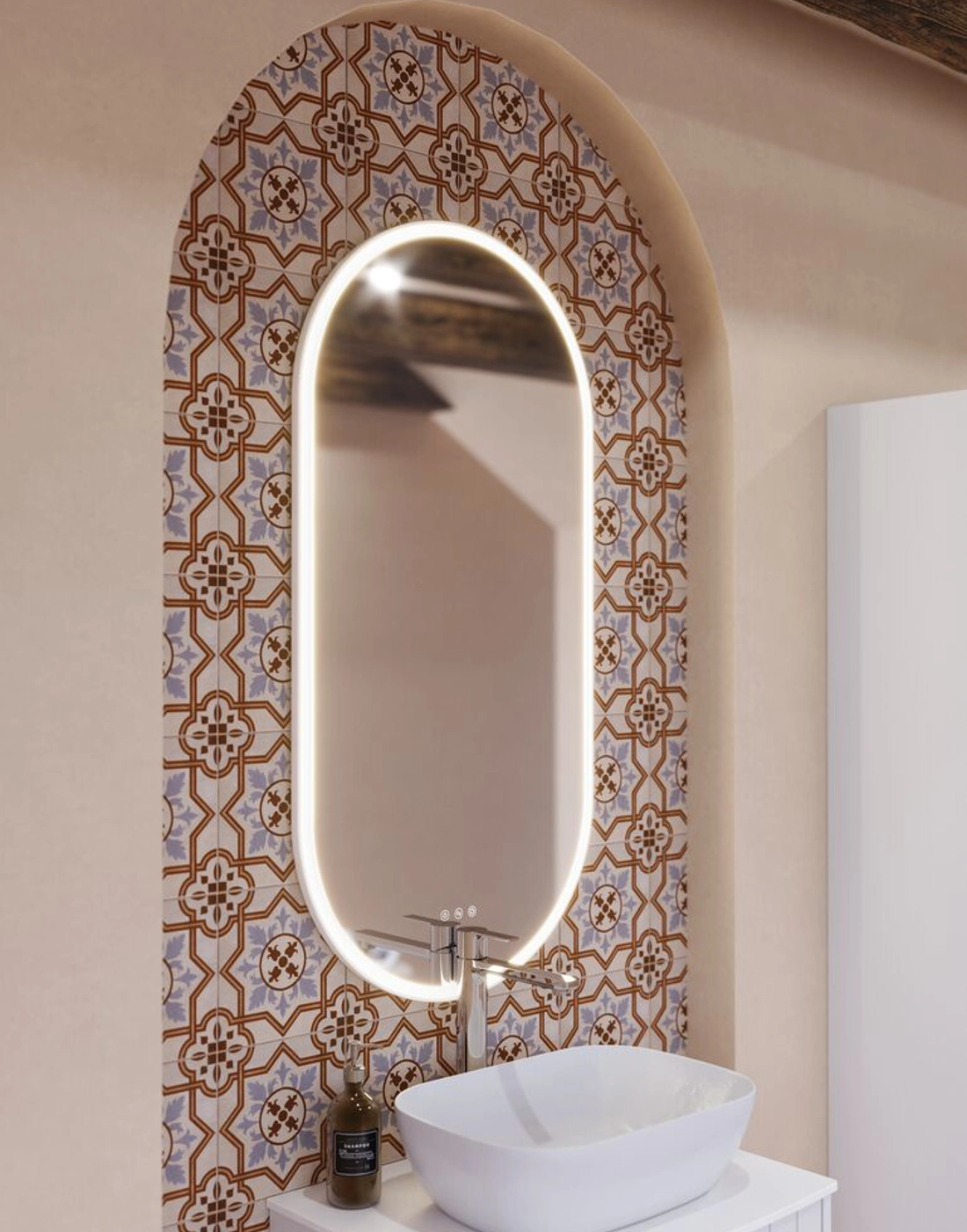 The oval Hoop mirror offers a stylish and modern look with its unique floating frame. The curved inner frame evenly directs light forward, creating soft, diffused light that provides pleasant illumination without glare. The mirror is equipped with light control, so you can adjust the brightness according to your needs, whether it's for makeup or creating a relaxing atmosphere. The Hoop mirror comes standard with a black frame, but it can also be ordered in a custom-painted color to match your bathroom. You can buy a pre-fitted anti-mist pad for the mirror to prevent the mirror from fogging up when you shower. NB: There is a start-up fee (BI2) for products with bespoke colour. It is an one-off surcharge per bespoke colour regardless number of products.