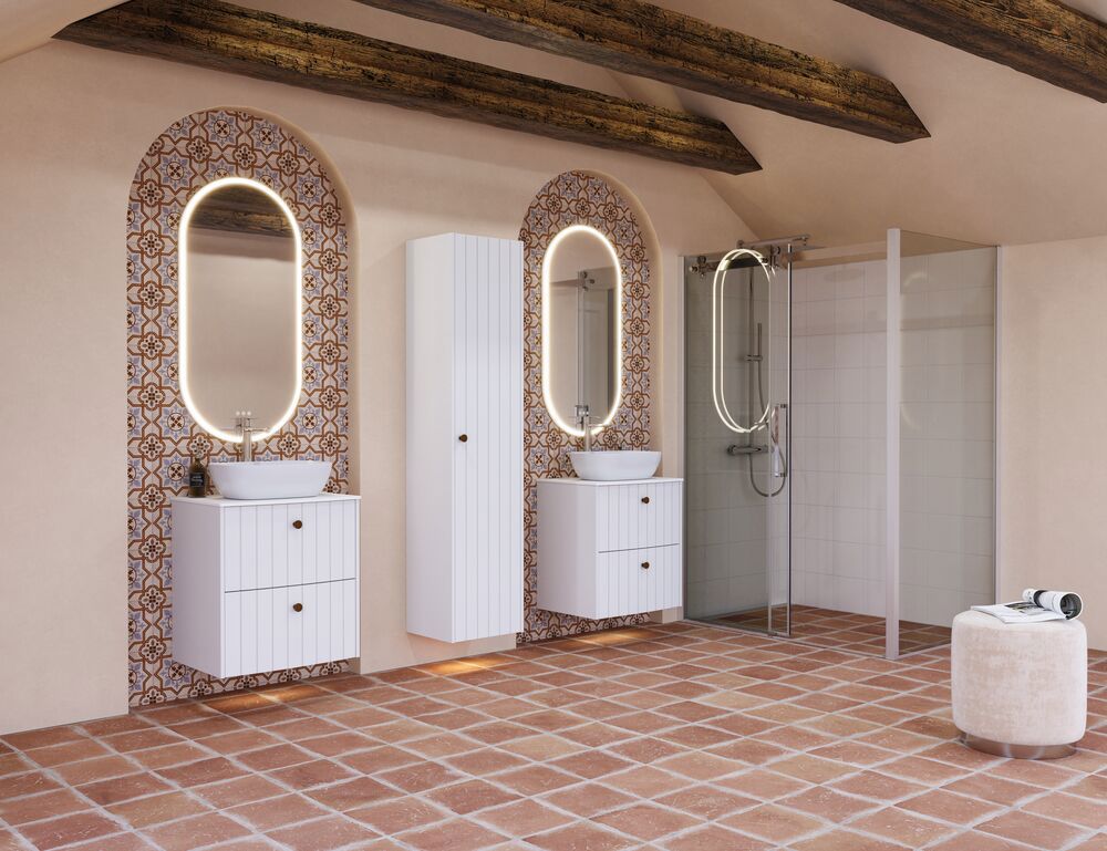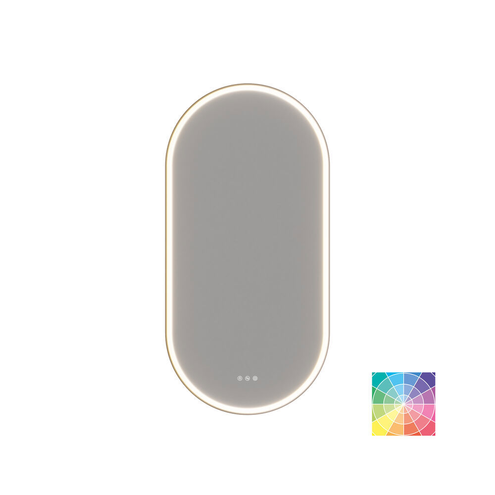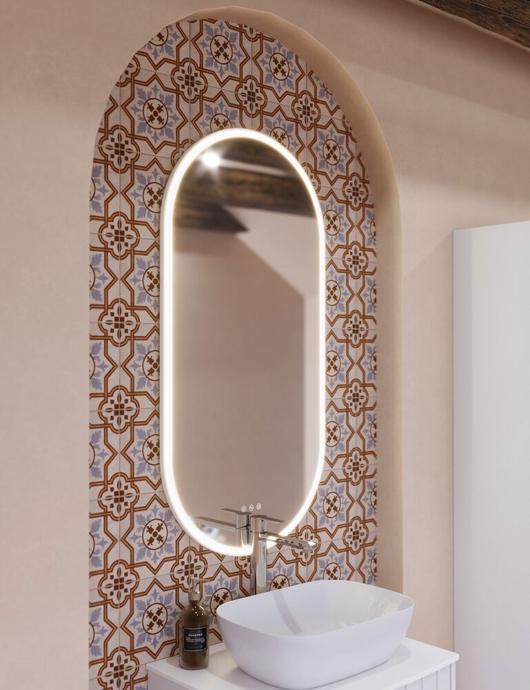The oval Hoop mirror offers a stylish and modern look with its unique floating frame. The curved inner frame evenly directs light forward, creating soft, diffused light that provides pleasant illumination without glare. The mirror is equipped with light control, so you can adjust the brightness according to your needs, whether it's for makeup or creating a relaxing atmosphere. The Hoop mirror comes standard with a black frame, but it can also be ordered in a custom-painted color to match your bathroom. You can buy a pre-fitted anti-mist pad for the mirror to prevent the mirror from fogging up when you shower. NB: There is a start-up fee (BI2) for products with bespoke colour. It is an one-off surcharge per bespoke colour regardless number of products.