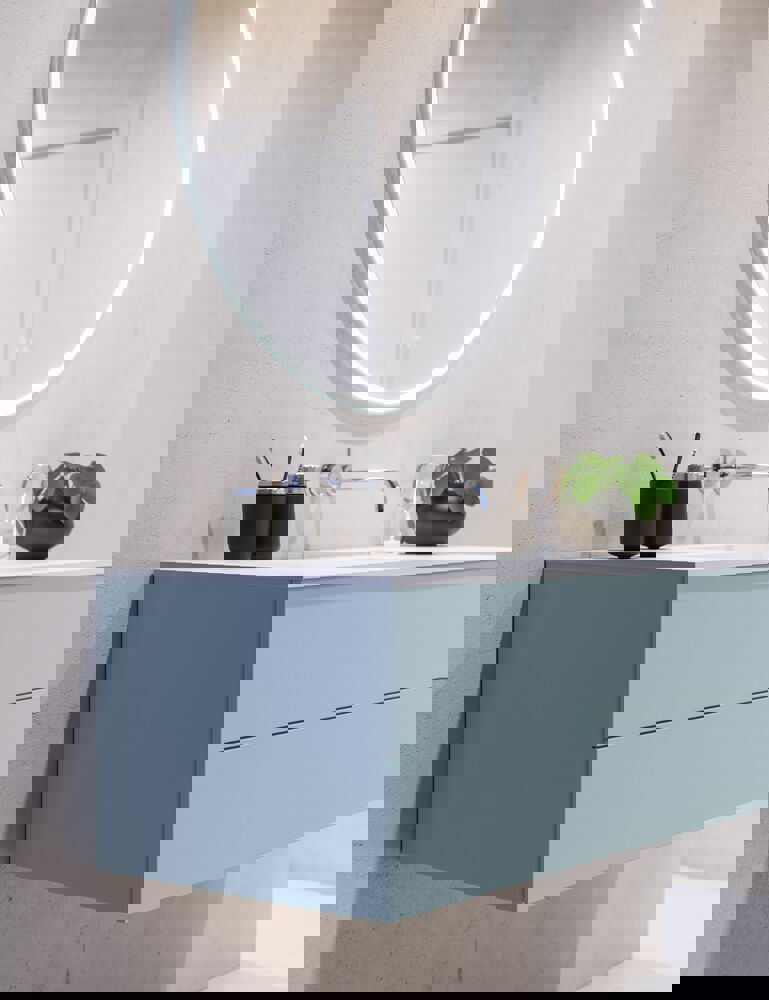 The Hoop mirror is inspired by floating frames, where the frame hovers freely around the mirror, creating a dynamic and light aesthetic. The curved inner frame directs light from the back forward, providing soft, glare-free light that spreads evenly throughout the room. With the built-in light control, you can easily adjust the brightness to suit your needs, whether it's bright light for makeup or soft light for relaxation. The Hoop mirror comes standard with a black frame, but you can choose to have the outer frame painted in a custom color to match your decor. You can buy a pre-fitted anti-mist pad for the mirror to prevent the mirror from fogging up when you shower. NB: There is a start-up fee (BI2) for products with bespoke colour. It is an one-off surcharge per bespoke colour regardless number of products.