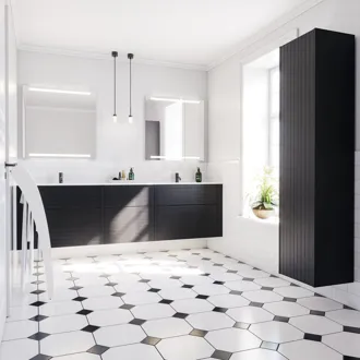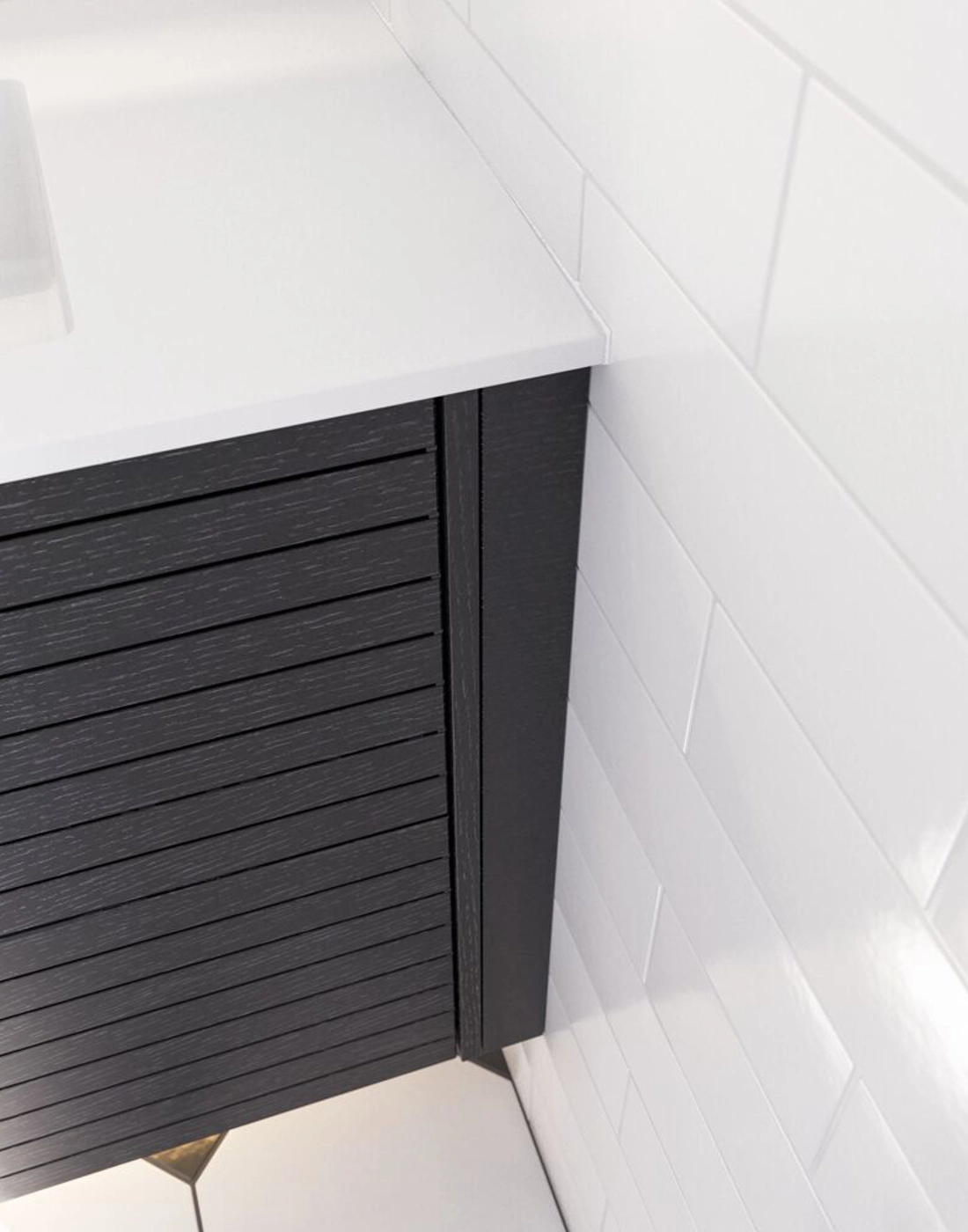Get a beautiful and fully integrated solution in your bathroom with the infill panels. If you've chosen a made-to-measure basin, you can get custom-made infill panels for your vanity unit for a built-in, clean look in your bathroom.