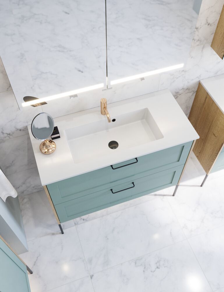 Create the perfect mood in your bathroom with downlighting incl. wireless lighting control under your vanity unit. The soft and discreet lighting creates a relaxing environment in the bathroom. The downlight for the vanity unit is available with a motion sensor, so the light turns on automatically when you, for example, go to the bathroom at night and don't want your sleep rhythm disturbed.NOTE: Requires a mirror solution with wireless lighting control added