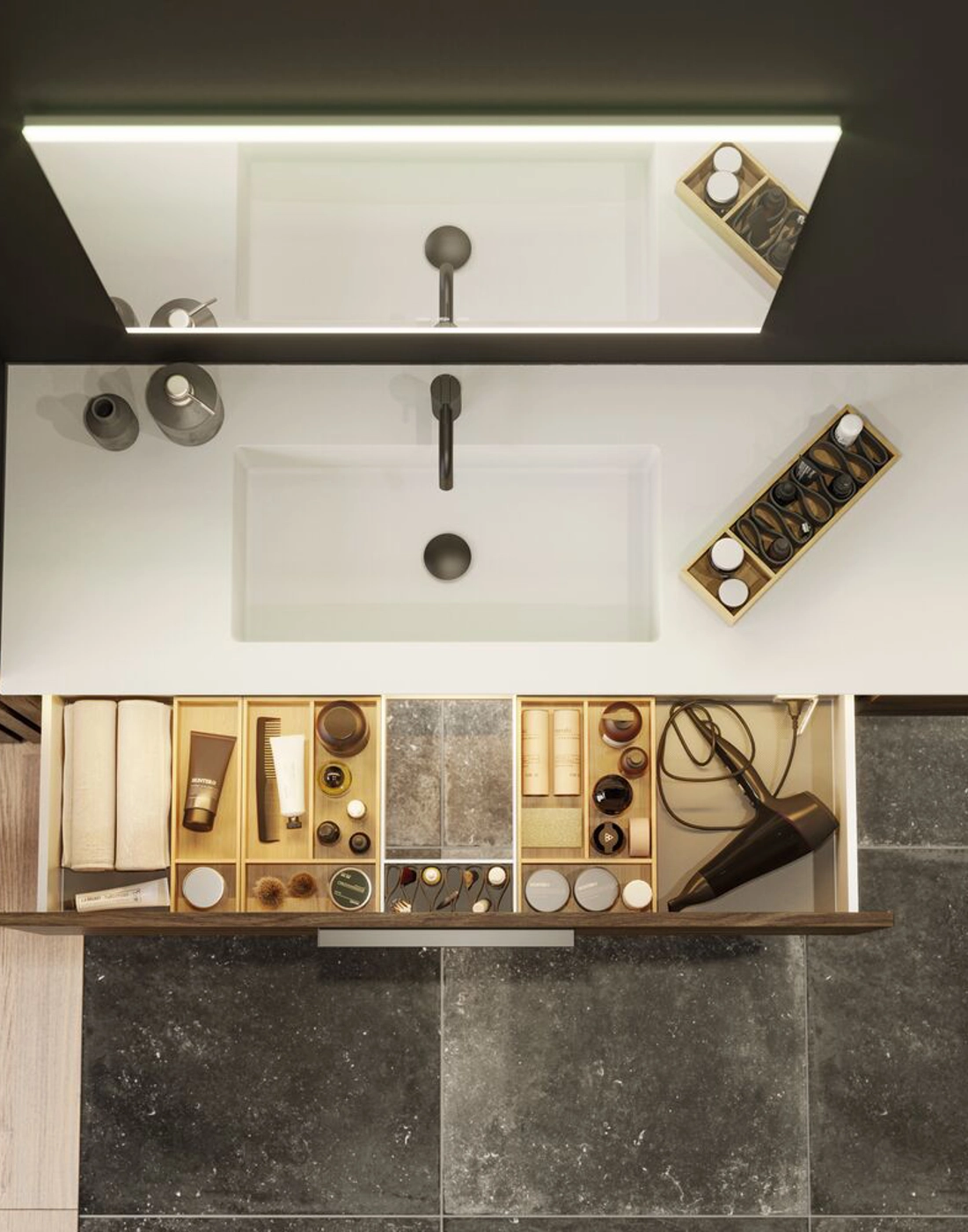 Create the perfect mood in your bathroom with downlighting incl. wireless lighting control under your vanity unit. The soft and discreet lighting creates a relaxing environment in the bathroom. The downlight for the vanity unit is available with a motion sensor, so the light turns on automatically when you, for example, go to the bathroom at night and don't want your sleep rhythm disturbed.NOTE: Requires a mirror solution with wireless lighting control added