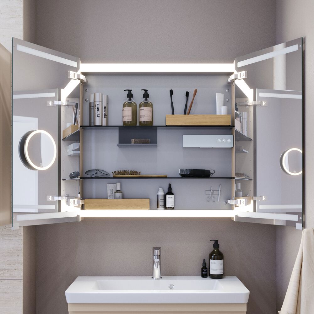 Level mirror cabinet with lighting and touch control
