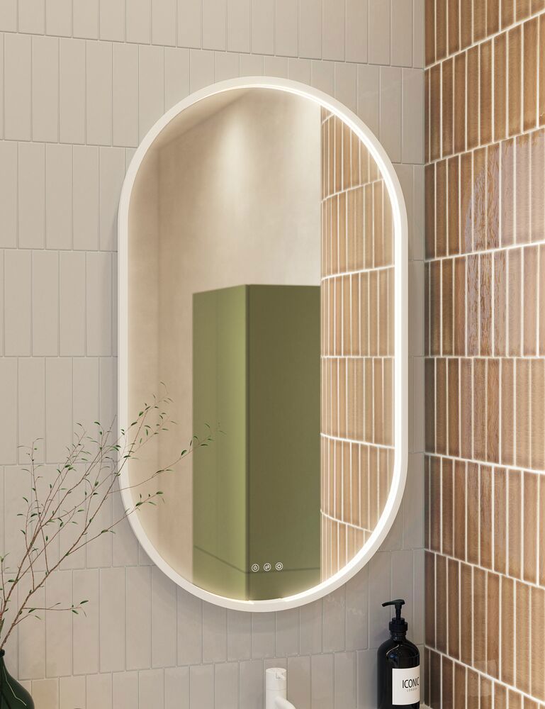 The Moon mirror is a beautiful and elegant framed mirror that holds its own as a decorative element in any interior space. The mirror is oval and softens the otherwise sharper edges in the bathroom. The mirror's robust frame is made of strong materials which gives the mirror a modern and stylish look. You can also control the strength and warmth of the light as the Moon oval mirror is available with light control. The frame around the mirror is available in black, white and brass so an option can be chosen to tie in with your personal style and decor. Perfect for the bathroom or bedroom, with the Moon Oval Mirror you can create a space with elegance and timeless beauty. You can buy a pre-fitted anti-mist pad for the mirror to prevent the mirror from fogging up when you shower.