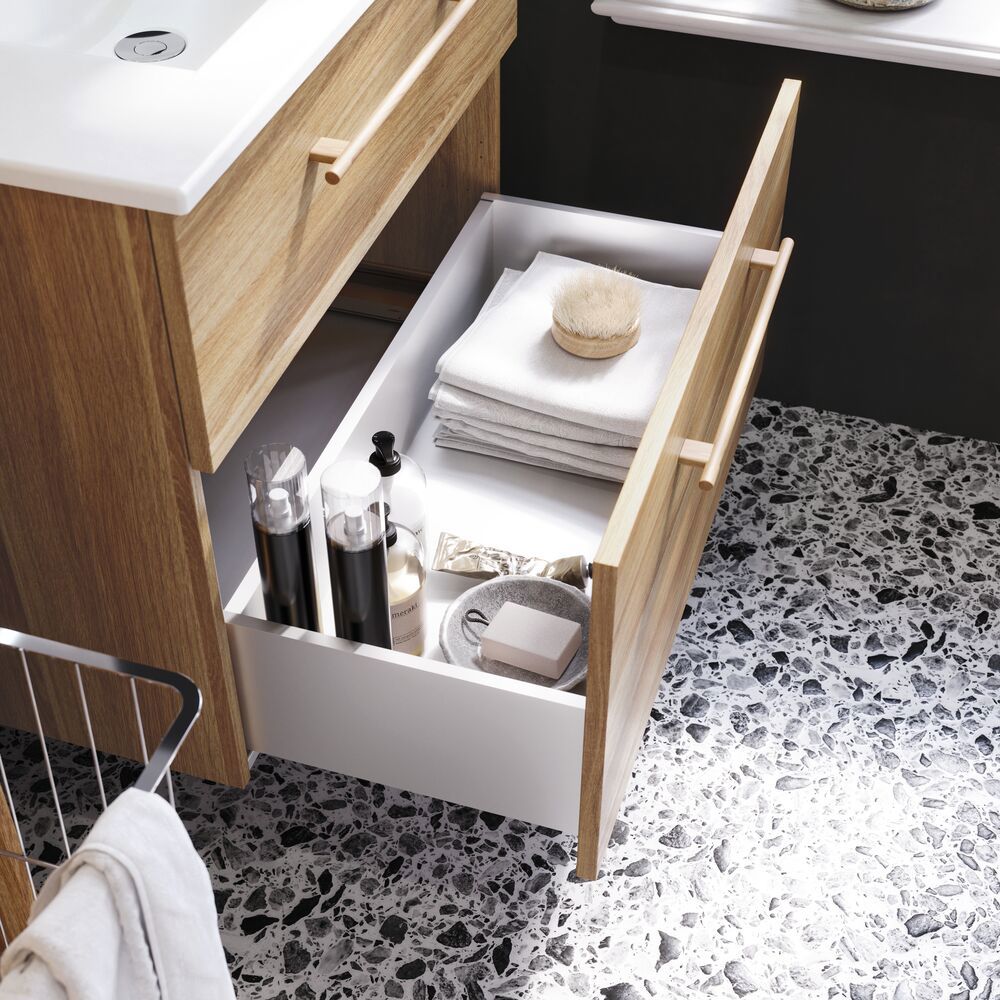 Natura is a handle that makes room for both function and aesthetics. The long, slim design in solid oak emphasizes the lines of the furniture and adds a sense of calm, warmth and natural beauty to the room. The wood's vibrant texture and soft surface make the handle comfortable to use while sending a signal of quality and timeless style. With its generous width of 40 cm, Natura is perfect for larger drawers and doors, where it can act as a striking and beautiful element inspired by nature and sustainability.