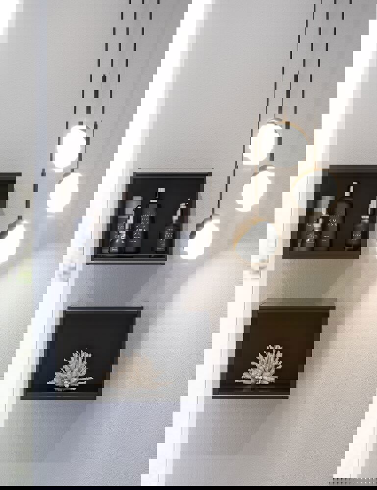 Dansani open shelving is the perfect addition to create a stylish and functional bathroom. Designed for versatile use, these shelves can be fitted on the wall, either as a standalone piece or in combination with one or two wall cabinets. With their open design, these shelves offer both a storage solution and a display space for your favourite items or bathroom products. Use them to organise towels, decorative elements or personal essentials while adding visual interest to your bathroom design. The option to combine these open shelving units with wall cabinets gives you additional flexibility to customise your storage space as needed, creating a symmetrical and functional layout. Dansani open shelving adds a modern and luxurious dimension to your bathroom, creating a space that is both beautiful and practical. NB: There is a start-up fee (BI2) for products with bespoke colour. It is an one-off surcharge per bespoke colour regardless number of products.