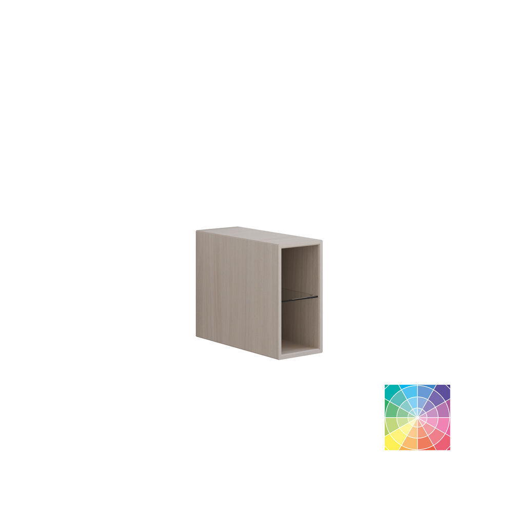 With a 40 cm open shelf in your Calidris bathroom, you get both extra storage space and an exclusive display shelf. The shelf has an elegant glass shelf in the middle, allowing you to divide the contents and create a light and inviting look. Finished with precise miter joints and veneer or lacquered surfaces, the shelf appears as a natural part of the furniture design. It aligns perfectly with the fronts and you can opt for integrated lighting at the top to highlight your items with a soft glow - and with the option of under lighting, you can create even more atmosphere in the room. The 40 cm high open shelf invites creative decorating - whether you want to display beautiful towels, design objects or your favorite scents - and gives your Calidris furniture an extra dimension of personality and luxury. NB: There is a start-up fee (BI2) for products with oak and bespoke colour. It is an one-off surcharge per oak and bespoke colour regardless number of products.