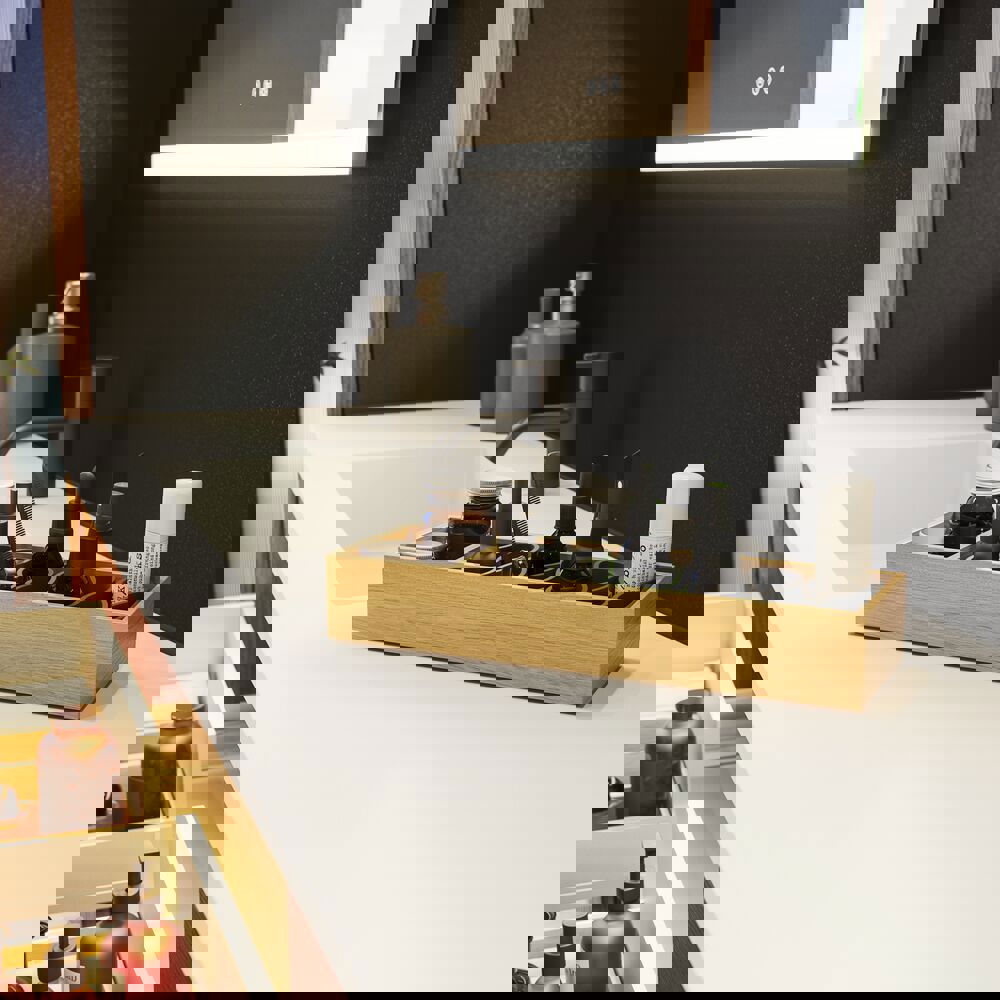 The Dansani Panorama Mirror is an impressive solution that combines modern design and practical functionality. With its panoramic format and lights placed both at the top and bottom, it offers great lighting for the entire room. Whether you need a brighter atmosphere or a more subdued mood, the mirror's light control function allows you to adjust the light according to your preferences. This combination of light and light control creates a comfortable and functional experience in your bathroom. The Panorama mirror from Dansani is a stylish and practical choice that will add elegance and functionality to any room. You can buy a pre-fitted anti-mist pad for the mirror to prevent the mirror from fogging up when you shower.