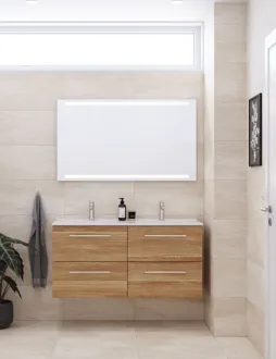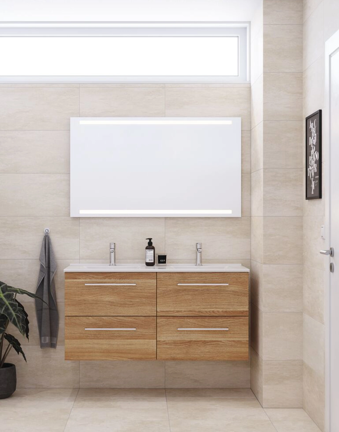 The Repeat mirror is a stylish and practical choice for your bathroom. The mirror has integrated lighting both at the top and bottom, creating optimal lighting in the room. The Repeat mirror is available with or without sensor control. If you choose the sensor model, you can easily turn the light on and off without touching the mirror. The mirror is of incredibly high quality, making it both durable and sustainable. You can buy a anti-mist pad for the mirror to prevent the mirror from fogging up when you shower. You must install the anti-mist pad yourself.