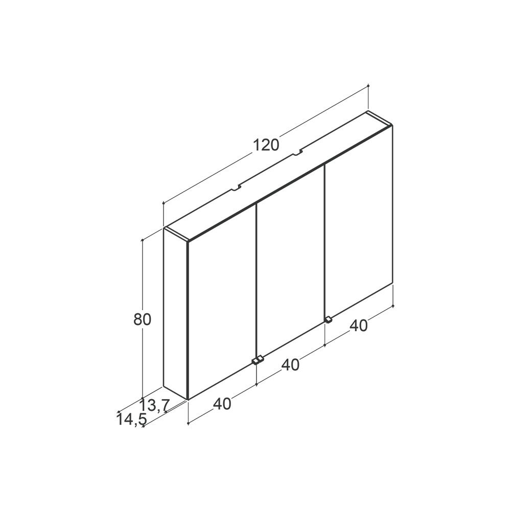 Select mirror cabinet 80x120 cm with 3 doors, 230v