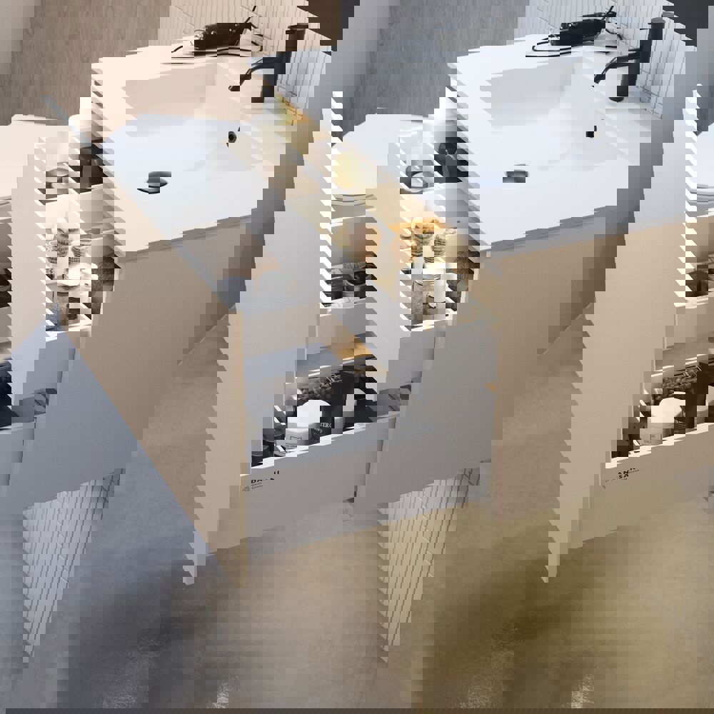 The Dansani Calidris Shape worktop is made from the thin and exclusive solid surface material. It consists of a strong acrylic-based composite material that has a dense and easy-to-clean surface. The worktop can be tailored to your needs and your bathroom. The Shape worktop is designed to withstand daily use and maintain its beauty over time. With its bespoke design and reliable construction, the Shape worktop is the optimal choice for those looking for a durable and stylish solution for their bathroom.