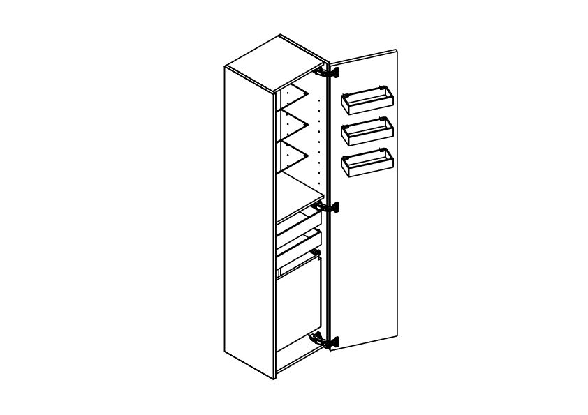 Tall cabinet with 1 door, fluted, version C, left hand hinged